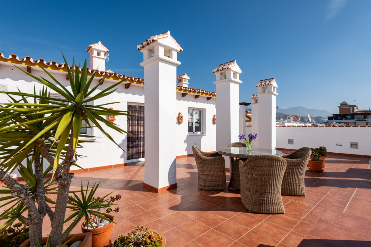 Tento penthouse v Torrox Costa zabírá celou střechu budovy. Byt o rozloze 94 m2 a
