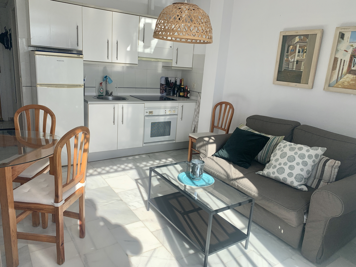 Vi har netop modtaget denne meget fine og friske lejlighed i det populære område Verano Azul i Nerja. Beliggende på øverste etage med fantastisk udsigt over Middelhavet og de omkringliggende bjerge. Ejendommen har 2 soveværelser, 1 badeværelse. Åbent køkken til stue. Aircondition med varmt og koldt klimaanlæg. God terrasse med masser af sol og en enorm udsigt.
