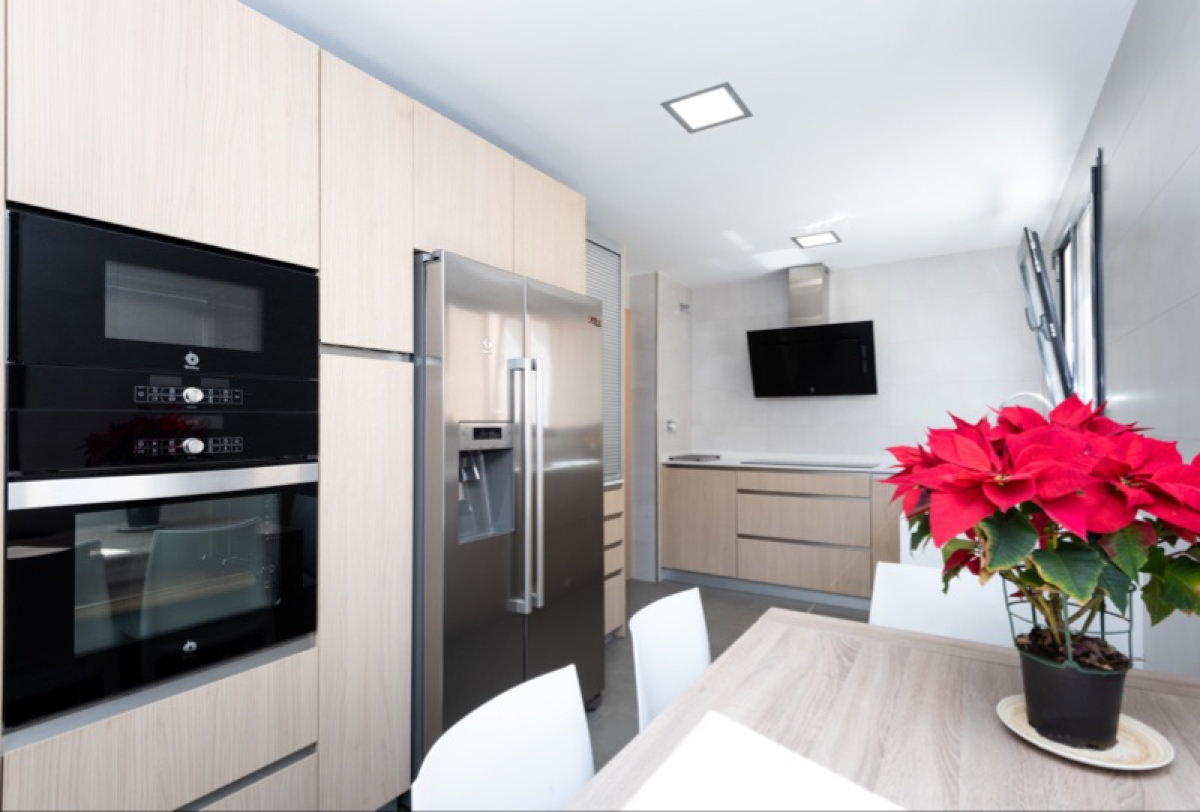 Sehr moderne Küche, Kamin im Wohnzimmer. Große terrasse mit Whirlpool. Helle und freundliche Farben. Garage im Preis inbegriffen.