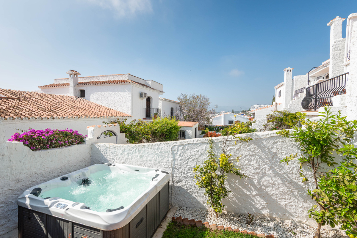 Casa en urbanización popular Pueblo Capistrano en Nerja, conocida por sus encantadoras calles empedradas, plantas, colores, flores y las casas encaladas.