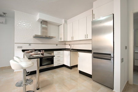 Ce sont des appartements situés au sud-est, avec 3 chambres chambre à coucher, ouvrir cuisine et 2 salles de bain, ainsi que grandes terrasses de 25 m2 et solarium de 27 m2.
