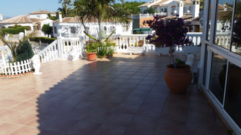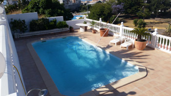 La villa è costruita su un unico livello, con un paio di brevi gradini che scendono verso la strada. La terrazza è molto ampia e ospita un piscina privata su 8 x 4.