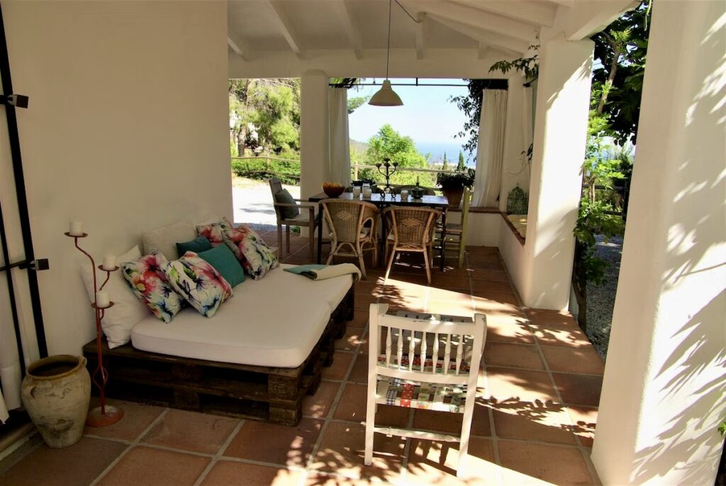 Detta charmiga lantliga hus i Frigiliana erbjuder öppen utsikt över Medelhavet och bergen samt en privat pool i en rofylld miljö mitt i naturen. Här börjar dagen med fågelsång och avslutas med stämningsfulla solnedgångar som skapar en unik atmosfär. Läget för huset vid foten av berget är mycket eftertraktat för de som söker hus i området.