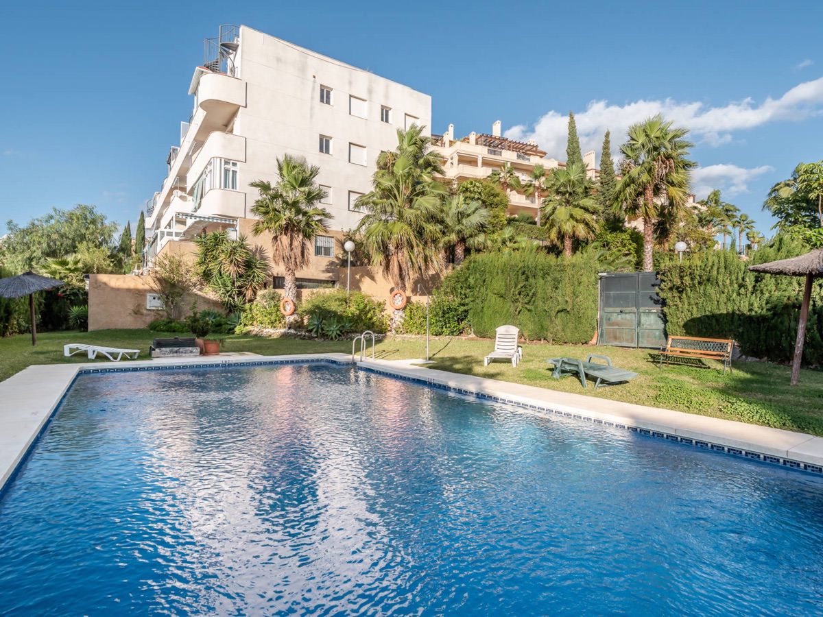 Ruim penthouse-appartement met 2 slaapkamers, 1 badkamer, ingerichte keuken en een groot terras met veel zon en uitzicht op zee. Gemeenschappelijk zwembad. Airconditioning, uitzicht op zowel zee als bergen, dakterras. Riviera del Sol Costa del Sol.