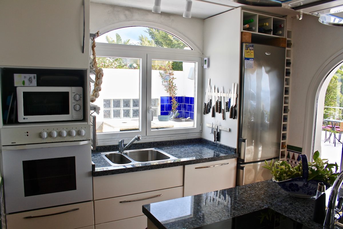 Het bovenste appartement bestaat uit een grote, lichte woonkamer met eethoek, keuken, twee slaapkamers, badkamer en een groot terras met een fantastisch uitzicht op zee. Buiten vindt u groot terras met een spectaculaire uitzicht op de zee en de wijngaardenEen deel van het terras is overdekt en het andere deel is van glas, waardoor de woning een extra buitenruimte heeft die ook in de wintermaanden van het terras kan worden genoten.
