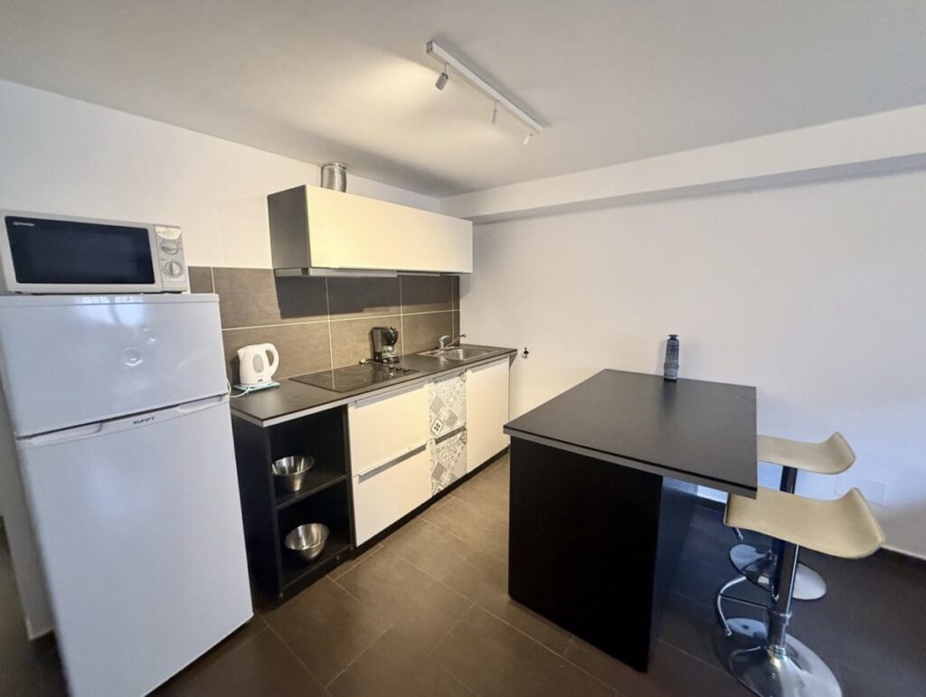 Den fristående lägenheten har egen ingång och består av vardagsrum med öppet kök, ett dubbelrum samt ett badrum med dusch utan tröskel. Vid entrén finns även en mindre privat uteplats.