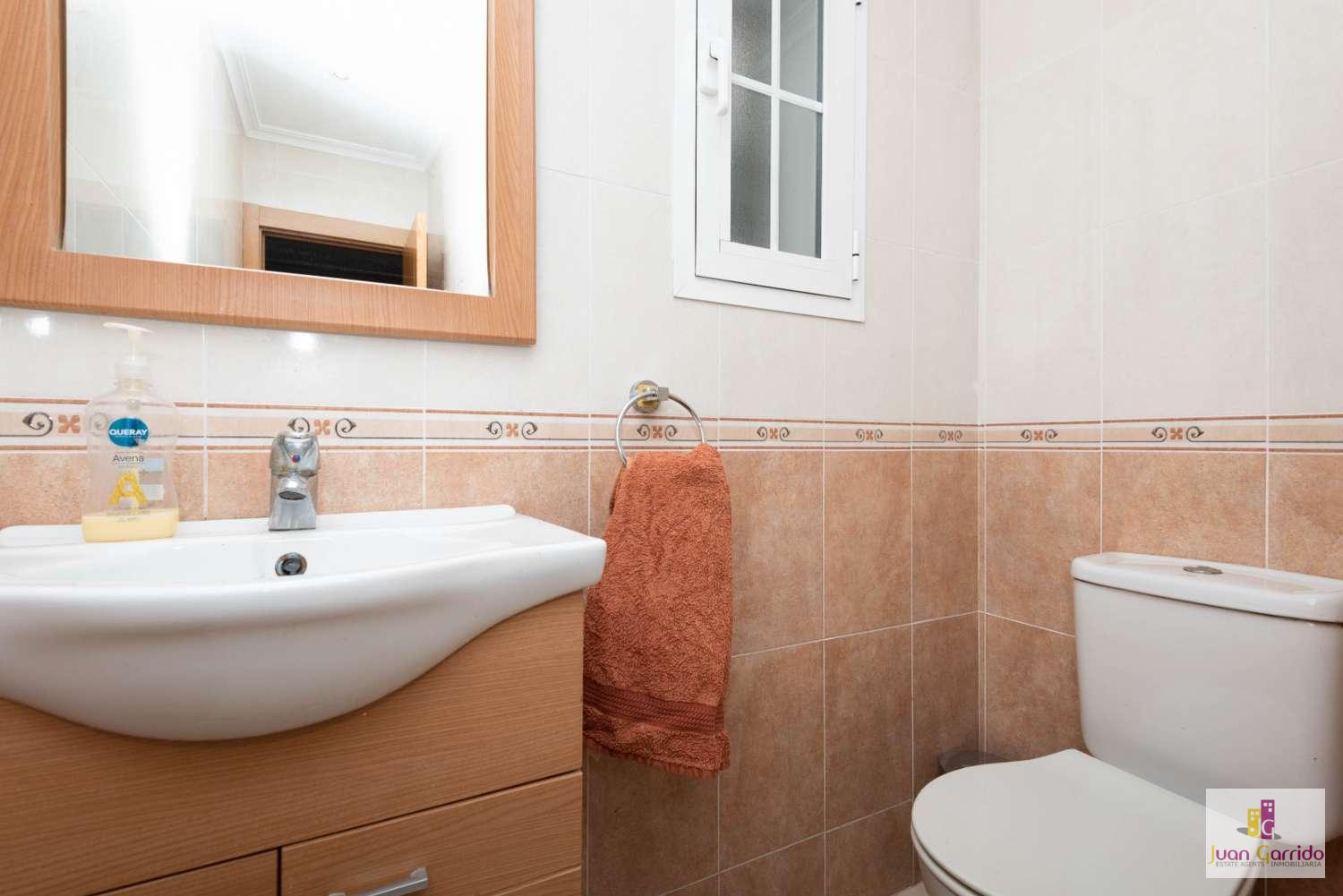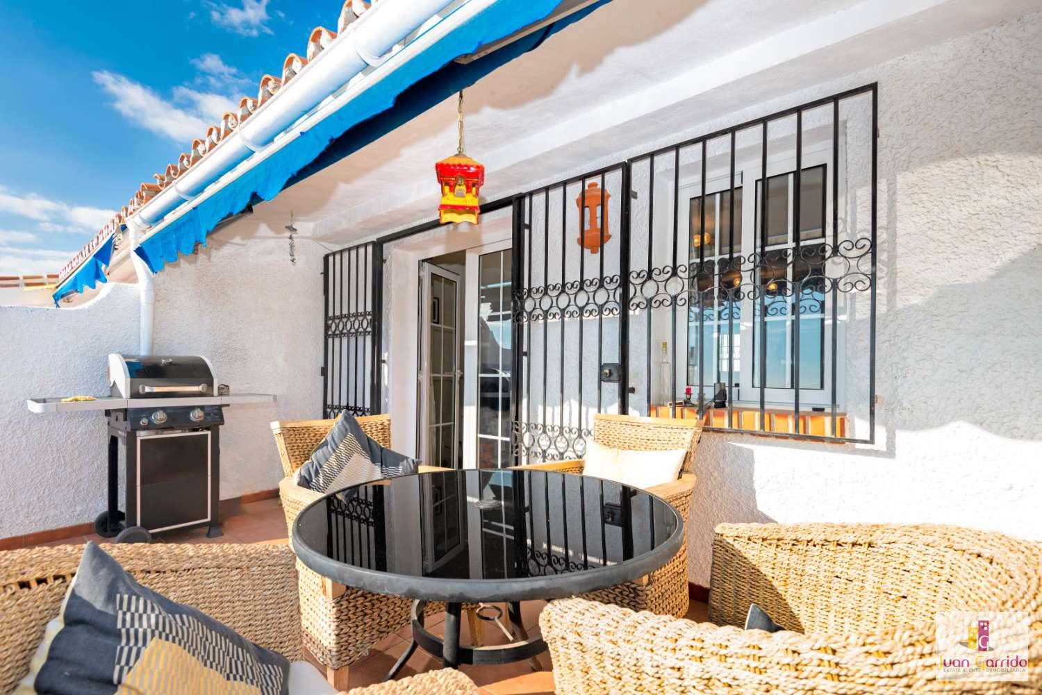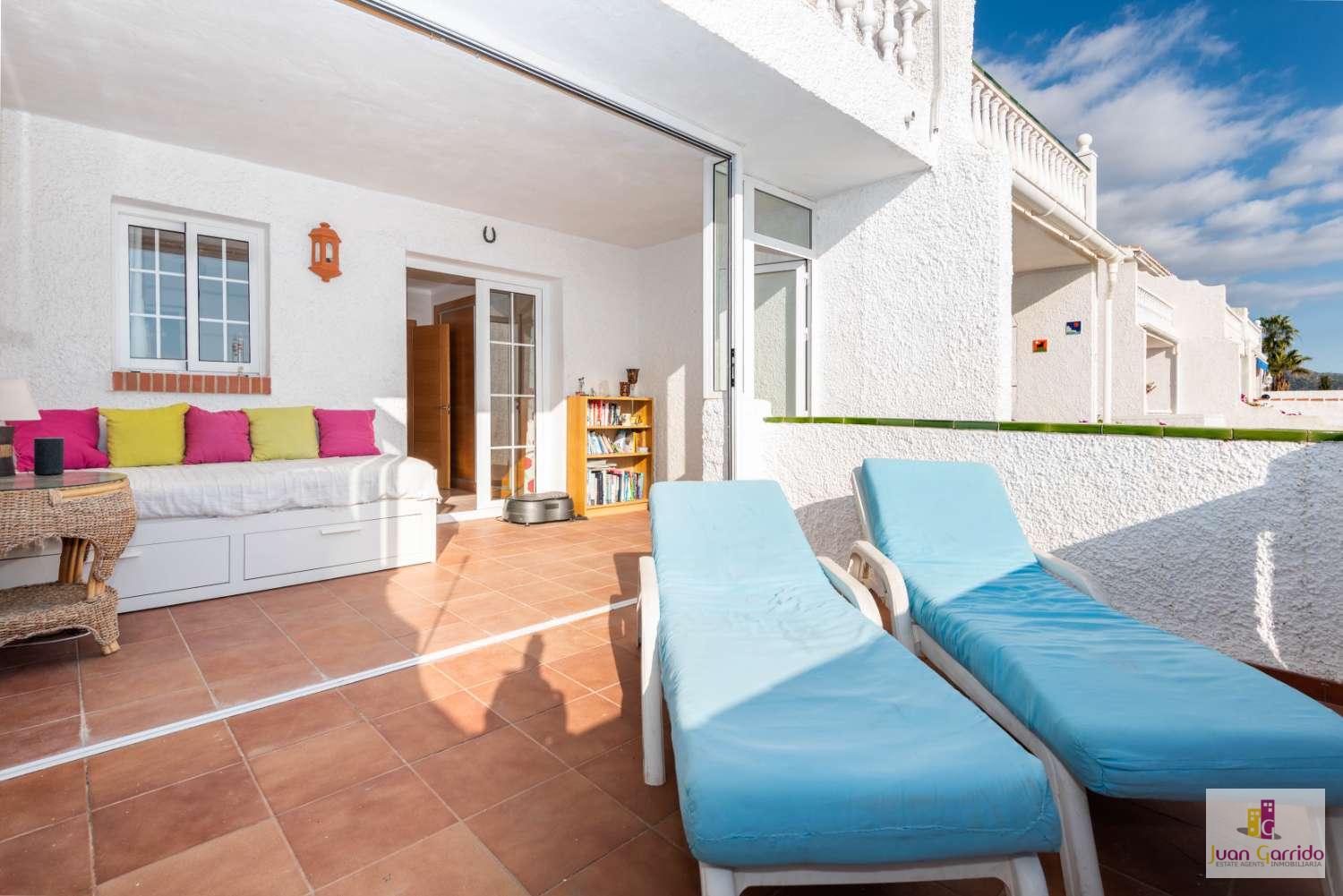 Casă înșiruită situată în urbanizarea Algarrobo (lângă San Juan de Capistrano) în Nerja. 2 dormitoare, 1 baie și o toaletă. Bucătărie bine utilată și spălătorie. Terasă mare la etaj și o altă terasă și mai mare la parter. Vedere fantastică la Marea Mediterană și la munți. Piscină comunitară în zonă.