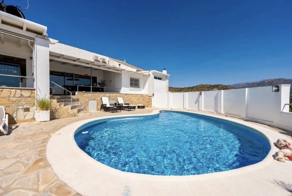 Fastigheten är belägen i ett lugnt område i Nerja och erbjuder både havsutsikt och bergsutsikt. Den säljs möblerad och har utrustat kök, privat pool, trädgård och inhägnad tomt. Här finns även gym, lugnt läge och generösa ytor för både privat bruk och uthyrning.